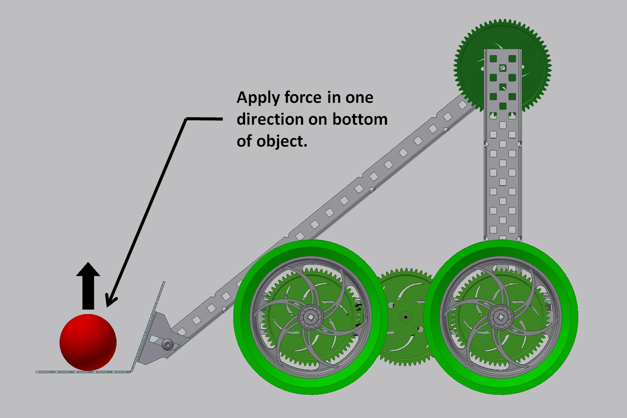 One of the most common and successful types of object manipulators used in competition robotics is the “roller claw.” This type of manipulator uses rotating wheels or rollers to “suck in” the game objects. This is an example of a friction grabber since the mechanism relies on of the friction between the rollers and the objects to hold them in place.