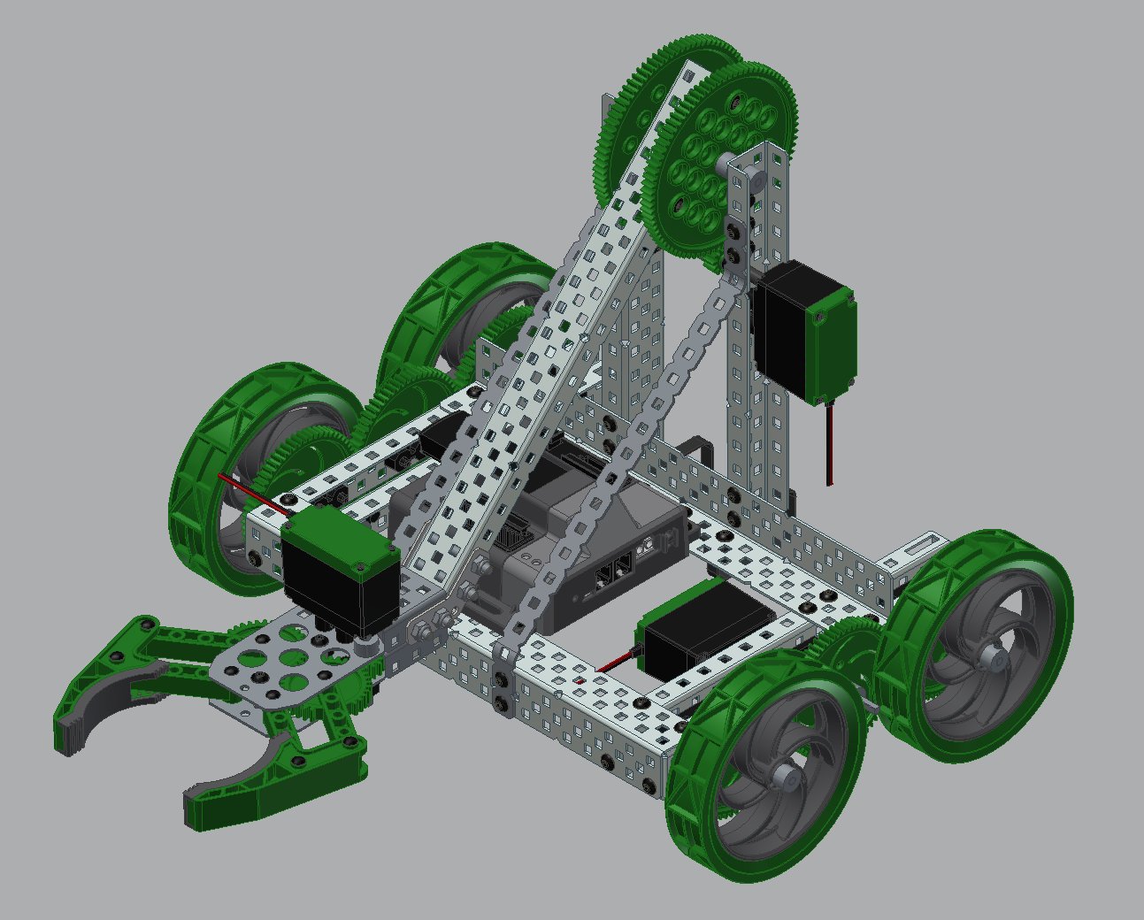 Roller Claws are extremely popular in competition robotics since they allow for very quick pickup of game objects without a requirement for fine positioning. Robot drivers just need to turn on the rollers, touch the object with the front of the roller claw, and it will suck the object in without any further control. Some designs are setup to automatically turn off the roller claw motor once the object has been grabbed (as previously described, good object manipulators don’t require to be powered to maintain grip).