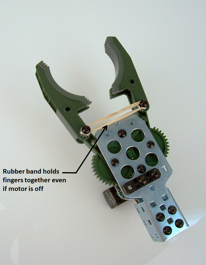 The above image shows an example of a claw which uses rubber bands to stay spring-loaded closed.